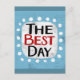 "The Best Day" est un design de texte mignon en bleu clair avec du texte en noir et rouge, avec une forme d'accent blanc et des points blancs à texture blanche.