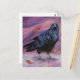 La carte postale Entre Mondes Raven de Michaeline McDonald présente un beau corbeau debout contre le vent tandis que les feuilles d'automne soufflent autour de lui.
