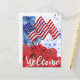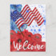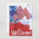 Bienvenue 4 juillet avec drapeau américain et fleurs aquarelles