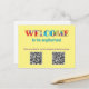 Bienvenue à de nouveaux amis et voisins avec cette carte postale lumineuse avec des codes QR liés à vos groupes Facebook et Instagram locaux. Les codes QR peuvent avoir des liens vers n'importe quelle URL de votre choix.