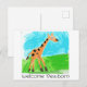 Le nouveau monde autour de moi ! La girafe de bébé court autour de la carte postale pour accueillir un nouveau-né.