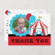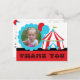 Vous pouvez facilement ajouter la photo de votre enfant et un message de remerciement à cette carte postale de Merci Big Top Circus avant de commander. Ou laissez-le blanc et écrivez votre message à la main ! Décoré sur le thème du cirque rouge, blanc et bleu, avec la grande tente et les ballons du haut !