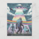 Carte Postale Bigfoot, Alien et Unicorne avec un ovni