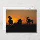 Un petit troupeau de moutons de corne s'installe pour la nuit. Leurs silhouettes se dressent contre le coucher de soleil éblouissant derrière elles. L'art informatique de Kathie Miller.