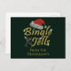 Design de nouveauté Bingle Jells avec Bingle Jells en points de police jaune doré conçu pour simuler l'art rhinestone cristal avec un chapeau de Père Noël rouge et un verre de cocktail martini agrémenté de fusées brillantes blanches. Placé sur le plus sombre vert saint. Personnalisez avec votre nom ou message en police jaune doré.