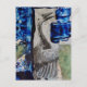 Carte Postale Bird Dino Blue Paint Mixed Media Collage