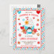 Cette invitation mignonne et festive présente une tasse à pois bleus avec un adorable manchot. Elle est remplie de chocolat chaud, de crème fouettée et de paillettes. À côté se trouvent des biscuits en forme d'étoile et de flocon de neige, des tourbillons de bonbons et des baies de houx. Le texte combine des polices grasses et sans serif pour un look stylé et moderne. C'est parfait pour une fête d'anniversaire sur le thème de Noël.