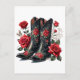 Carte Postale Black Cowboy Boots With Red Roses