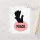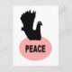 Cette carte postale présente une silhouette noire d'une colombe fantaisie à l'oeil blanc, assise sur un nid rose ovale avec le mot paix écrit en noir au centre du nid. L'arrière - plan est blanc mais peut être changé en n'importe quelle couleur que vous aimez en cliquant sur le bouton "customiser".