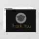 Une carte postale de remerciement qui dit Classe 20xx sur le devant, écrite en or. Conçu avec un capuchon de graduation noir entouré d'un cercle blanc semi-transparent. Arrière - plan noir avec lettrage or est simple mais élégant.. Message au dos duquel vous pouvez personnaliser.