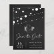 Carte Postale Black String Lights Monogramme Mariage Enregistrer