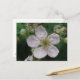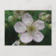 Cette jolie carte postale florale présente une photo d'une fleur de mûre blanche. La photo a été prise en utilisant la macro photographie pour un résultat détaillé. On y voit les détails fins comme la teinte rose sur les pétales blancs.