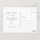 Ce mariage minimaliste moderne sauve les cartes postales datées avec une photo de couple d'arcs boho, imitation délicate or éléments floraux et un ensemble contemporain de polices en noir jet. Le détail de la fleur est répété à l'arrière. Le design est contemporain et chic. Parfait pour le couple élégant et élégant.
