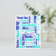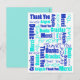 Envoyez un message de carte postale unique avec ce nuage de mots Merci multilingue bleu et turquoise dans une variété de styles de caractères. Cliquez sur "Personnaliser" pour ajouter du texte au verso ou laissez-le vide pour un message manuscrit. Dans la personnalisation, vous pouvez sélectionner différentes couleurs de fond pour le recto et le verso.