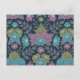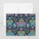 Cette carte postale présente des fleurs dans les tons violet, bleu et vert olive entourées de frondes de fougères violettes muettes et de feuilles sur un arrière - plan bleu foncé.