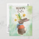 Carte Postale Bleu mignon avec fleurs heureux Pâques