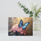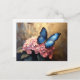 Carte Postale Bleu papillon rose fleurs