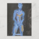 Un tableau d'un jeune homme minuscule à la construction d'un nageur, rendu en bleu avec des reflets d'or.