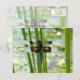 Cette belle photo de libellule a été prise au Jardin botanique de Grand Junction, Colorado. La libellule repose sur une grande lame d'herbe avec ses ailes étendues. Son corps est bleu et ses ailes translucides sont brun foncé à la base et blanc à la pointe. Chaque aile a également une petite bande noire sur le bord supérieur vers la pointe. Il y a plusieurs lames d'herbe verte derrière la libellule et l'arrière - plan de la photographie est plein d'eau pétillante reflétant le soleil.