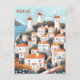 Cette jolie carte postale de voyage présente une illustration inspirée des moulins à vent de Bodrum, en Turquie.