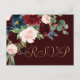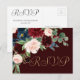 Réception de mariage ou réception RSVP réponse brillante peinte à la main et élégante carte d'insertion avec un marsala rouge bordeaux et rose vif, aquarelle fleurie sur un cadre géométrique or métallique avec des fleurs d'accent bleu marine agrémenté de laurier botanique et de rouge foncé. De la collection "Boho Bloom", ce somptueux aménagement présente un riche bouquet fleur sauvage bohème avec des fleurs éclatantes et des feuilles verdoyantes d'eucalyptus. Pour d'autres couleurs ou produits correspondants, veuillez visiter le magasin JustFharryn Zazzle, ou contacter le concepteur, c/o Fharryn@yahoo.com Tous droits réservés. #bohochic #zazzlemade