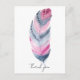 Magnifique dessin de plume boho rose et gris à l'aquarelle. Carte de remerciement simple adaptée à toutes les occasions.