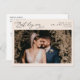 Conçue pour coordonner avec notre collection de mariage de script élégant, cette carte postale personnalisable Flat Photo Merci dispose d'un script élégant avec coeur, merci texte à l'avant et couplée avec une police serif classe en noir sur le dos. Éléments correspondants disponibles.
