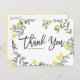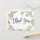 Envoyez un merci à votre famille et à vos amis pour avoir participé à votre événement avec cette carte postale citron merci. Il présente une couronne d'aquarelle de citrons et de verdure. Personnalisez en ajoutant des noms, des adresses de retour et des messages. Ce carte de remerciements citron est parfait pour les mariages d'été et citron, les baby showers, les douches nuptiales, les anniversaires, et bien plus encore.
