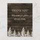 Pins rustiques en bois de barnwood, cartes postales de Merci de mariage hivernal. Produits correspondants également disponibles.