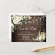 Carte Postale Bois Roses blanches Mariage rustique Sauvez la dat