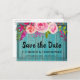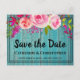 Cette jolie carte postale rustique Save the Date présente un arrière - plan en bois bleu avec une typographie branchée décorée d'un bouquet rose à aquarelle fleurie avec feuillage vert. Customisez la police et la couleur du texte à votre goût.