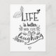 Éclairer la journée de quelqu'un avec une note manuscrite. Cette carte postale de motivation amusante est un grand rappel quotidien de ne pas prendre la vie si au sérieux. La citation dit...La vie est meilleure quand vous rirez imprimé en noir gras, en complément des polices surlignées de feuilles dessinés à la main et des coeurs avec un arrière - plan d'aquarelle bleu. Carte postale de bonheur motivationnel est formidable pour * salutations - bonjour, penser à vous, amour, vous manquez, etc * entreprises * annonces - nouvelle maison, emploi