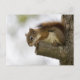 Image mignonne d'un jeune écureuil rouge qui regarde de sa perche vers le bas.