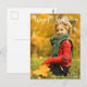 Élégante carte postale Bonne Action de grâce avec une belle typographie cursive blanche sur votre photo d'automne. Cette carte pliée de photo de famille automnale moderne présente une superbe écriture et votre nom en blanc sur l'image de vacances saisonnière en pleine page.
