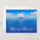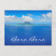 Carte postale d'une vue aérienne sur l'île tropicale Bora Bora avec lagon turquoise dans l'océan Pacifique près de Tahiti en Polynésie française avec le texte : "Bora Bora, Polynésie française".