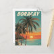 Cette affiche vintage chaude et rêveuse capture la beauté tranquille de Boracay au coucher du soleil. Avec des palmiers qui se balancent, du sable blanc poudreux et un ciel orange-rose lumineux sur des eaux turquoise calmes, l'œuvre d'art évoque le charme paisible de l'île la plus aimée des Philippines. Mise en forme avec des textures rétro et des tons décolorés par le soleil, c'est un hommage nostalgique aux échappées tropicales classiques et à la sérénité intemporelle de l'île.
