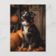 Une belle frontière Collie pose avec l'art généré par l'IA citrouille