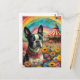 Un adorable Boston Terrier dans un champ de fleurs sauvages avec une tente de cirque dans l'arrière - plan AI généré art