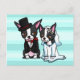 Doté d'une adorable paire de caricatures de Boston Terriers habillées en mariée et mariée. Le Groom porte un smoking noir et blanc avec une cravate arc rouge et la mariée porte une jolie robe blanche et un voile orné de fleurs. Parfait pour les amoureux de les chiens !