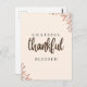 Caractéristiques du texte 'Grateful, Thankful, Blessed' sur un fond brun clair/crème avec un motif botanique dans les coins. Palette de couleurs principalement en nuances de brun, parfaite pour la saison automnale et des récoltes ou à tout moment !