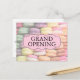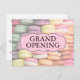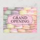 Carte de voeux d'ouverture de la Boulangerie de Macarons Français Mignons. Accueillez vos nouveaux clients dans votre boulangerie ou confiserie avec cette carte colorée. Changez tout le texte, le logo, et vous pouvez également changer la couleur du cadre rose sur le devant. Ces douces confiseries françaises à base de meringue sont remplies d'un centre savoureux pour créer un sandwich de biscuits délicieusement sucré.