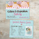 Une carte postale à double face attrayante pour les boulangeries qui font cuire des cupcakes, des gâteaux, des desserts et d'autres produits de boulangerie. Il a un arrière - plan d'impression de cupcake en bleu, et vous permet de modifier les images avec vos propres produits de boulangerie (ou utiliser ceux sur le prospectus). Le texte modifiable comprend votre numéro de téléphone, votre courriel, votre site Web, et au verso votre menu de boulangerie et la liste des saveurs. Idéal pour distribuer aux marchés, boulangeries, magasins, clients et à une taille pour envoyer de la publicité par la poste.