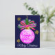 Carte Postale Boule de Noël unique ruban rose