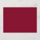 Une carte postale "Bourgogne" couleur foncée et solide (avec une couleur seulement sur le devant). La Bourgogne est un rouge foncé ou un violet foncé, un violet rougeâtre. Cliquez sur "Personnaliser" pour changer de couleur ou pour ajouter du texte ou une conception. Code hexadécimal du produit : #800020