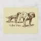 English Setter renifle le cul d'un Bulldog avec le slogan "I Like You" (Je t'aime). Illustration drôle de chien.