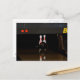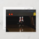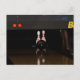 Une carte postale avec une photo de deux épingles sur le point d'être abattue par une boule de bowling.