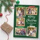 Brosse moderne Script Joyeux Noël 5 Photo Collage avec bande artisanale Carte postale de vacances. Arrière - plan vert forestier.