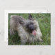 un petit terrier cairn brindé dans l'herbe avec la langue pendante