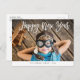 Envoyez les voeux du Nouvel An à votre famille et à vos amis avec ce design moderne comprenant un script de vacances en brosse blanche et une belle photo.