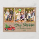 Brosse moderne Script 3 Photo Famille Photo Joyeux Noël Carte postale Kraft. Aquarelle Vintage Camion rouge avec sapin de Noël.